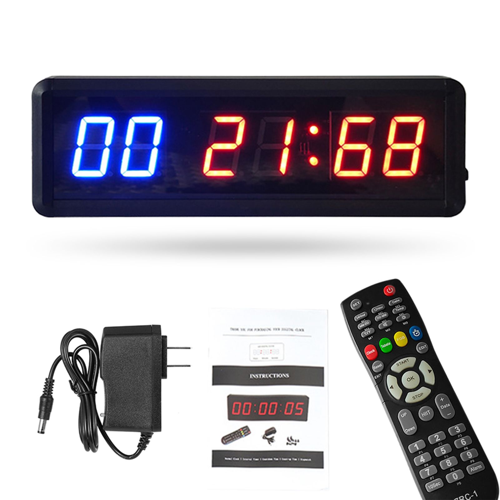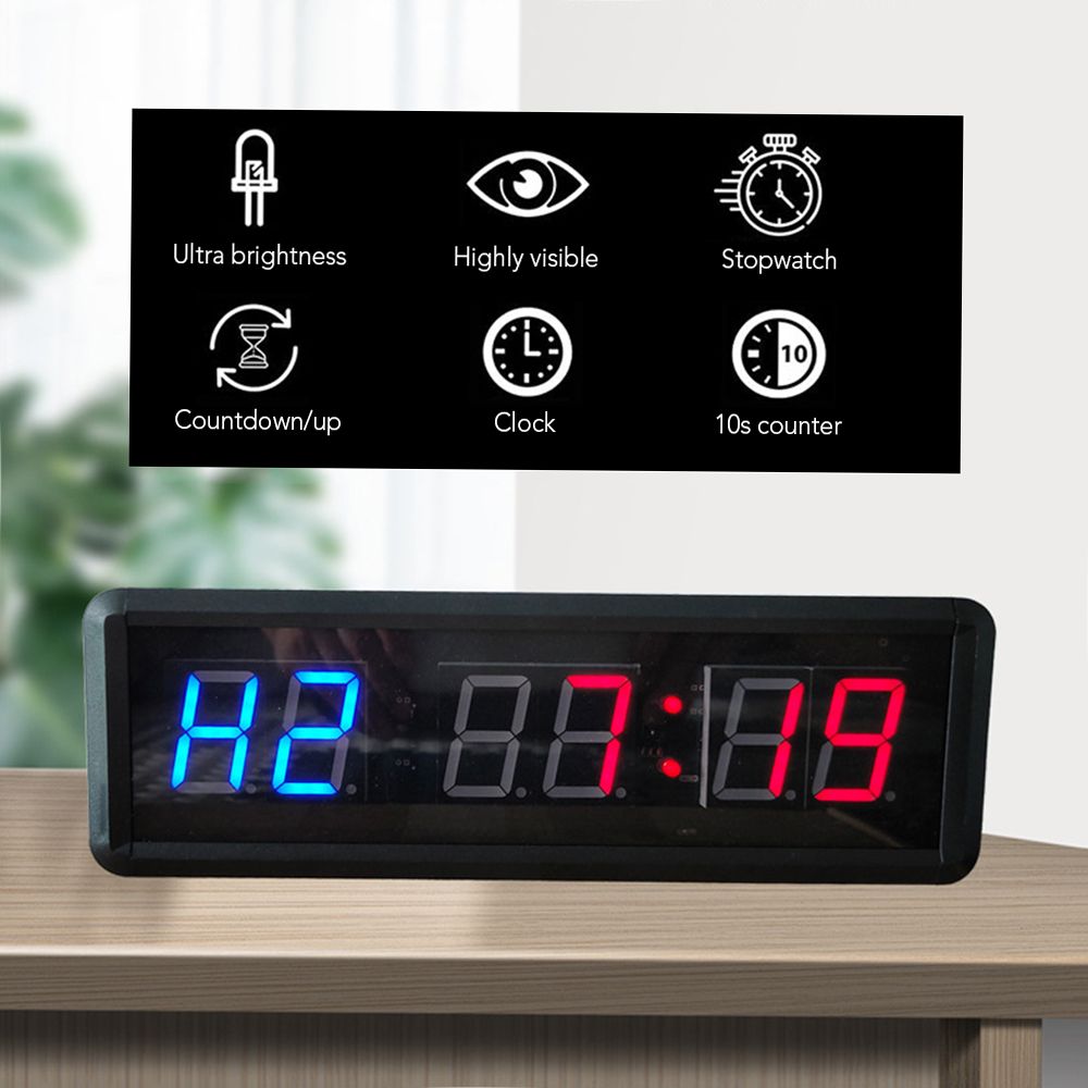 1.5in Gym Timer Stopwatch with Remote Countdown/up Clock for Home Gym Fitness Training Interval Timer Clock with Wall Mount Brackets