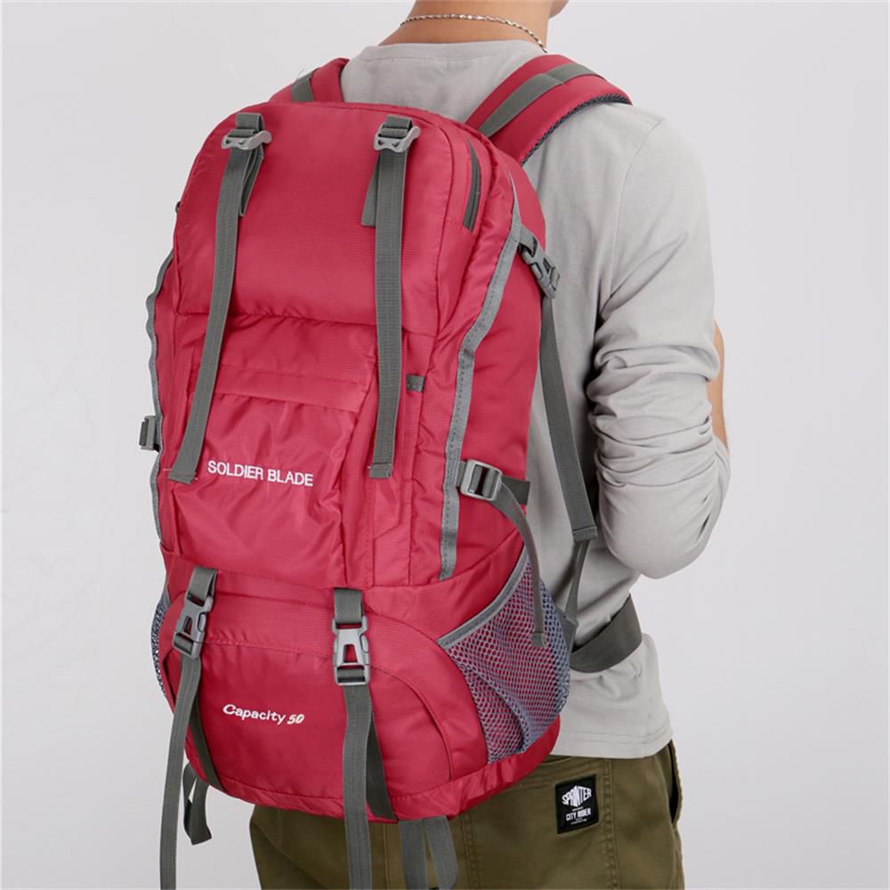 This 50L large capacity daypack must be a good companion for your fantastic outdoor experience. Waterproof and rip-stop nylon material, 50L large capacity are spacious for your sleeping bag, mat, hammock, tripod, climbing stick and other gears. Nice bag for running, cycling, hiking, mountaineering, etc.
