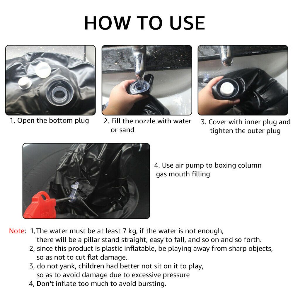 This inflatable boxing column is easy to fill water/sand and inflate air to use. It rebounds quickly and softly, suitable for fitness, stress and Taekwondo training.