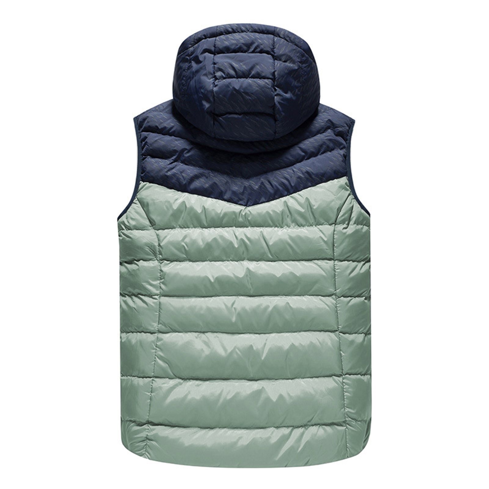 Fashion Men Winter Electric Heating Vest USB Charging Splicing Hooded Zipper Pocket Thermal Warm Casual Waistcoat Outerwear