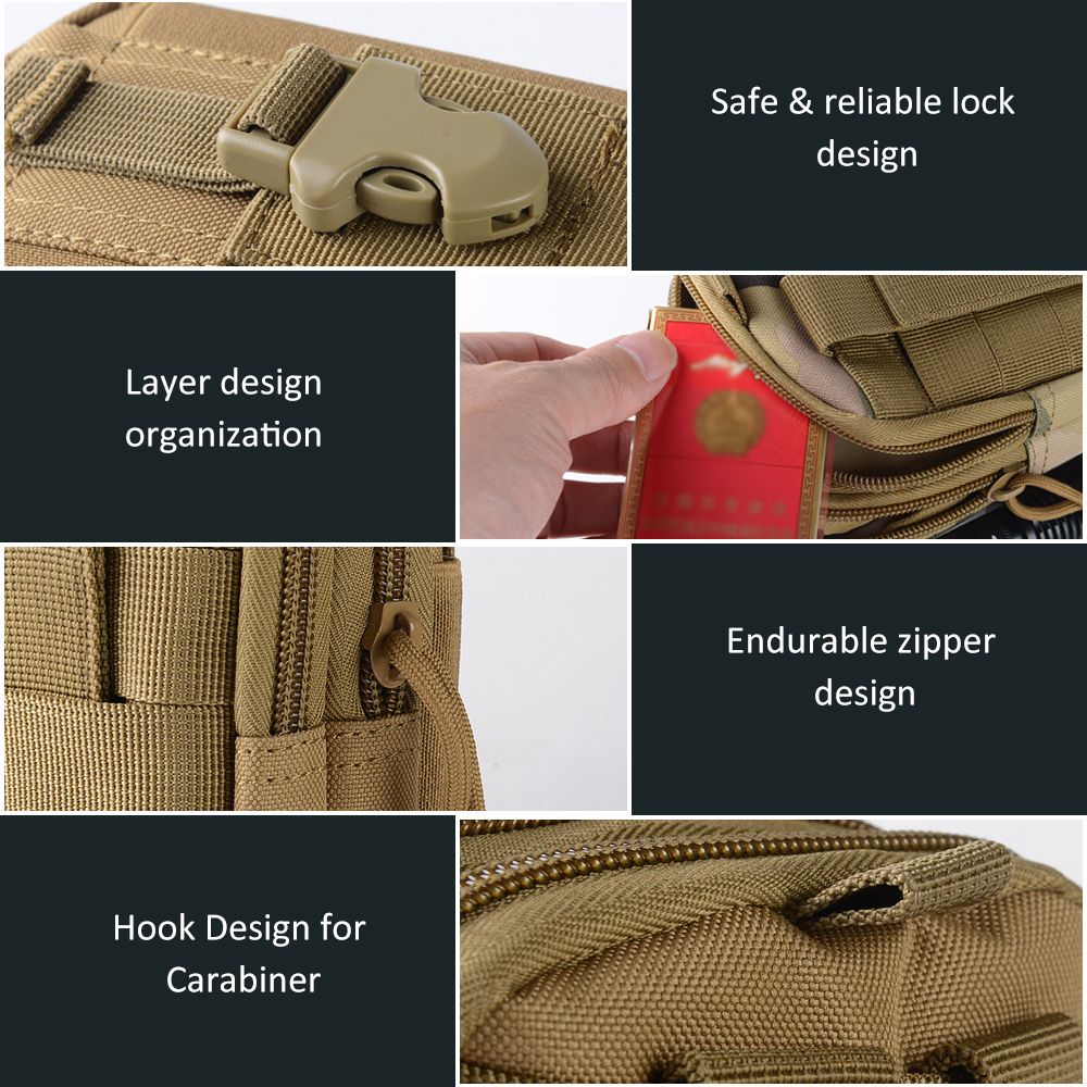 Black Portable Outdoor Tactical Pocket Bag Mobile Phone Waist Bag Wearing Belt Running Multi-functional Bag for Camping Hiking Fishing