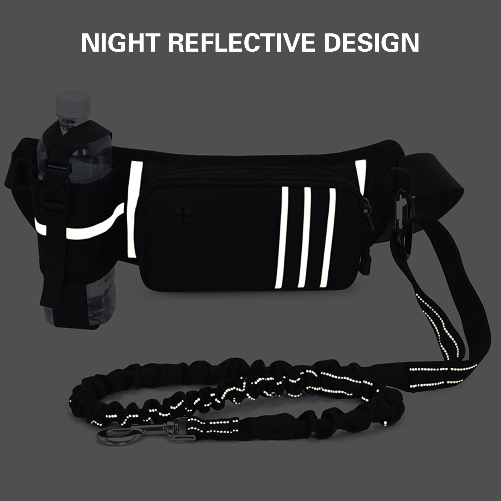 Hands Free Dog Leash Waist Bag Reflective Waist Pouch with Retractable Bungees Poop Bag Dispenser Pouch Adjustable Waist Belt for Training Walking Jogging and Running Your Pet