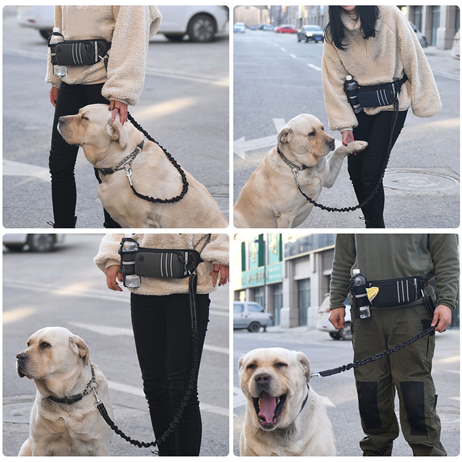 Come with a waist bag, a detachable dog leash and a roll of poop bags.