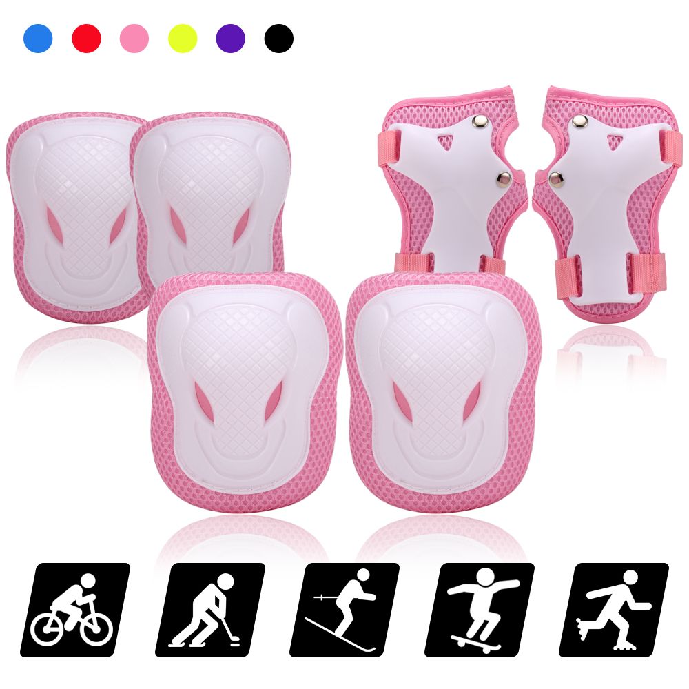 Kids Knee Pads Set 6 in 1 Protective Gear Kit Knee Elbow Pads with Wrist Guards Children Sports Safety Protection Pads for Cycling Roller Skating