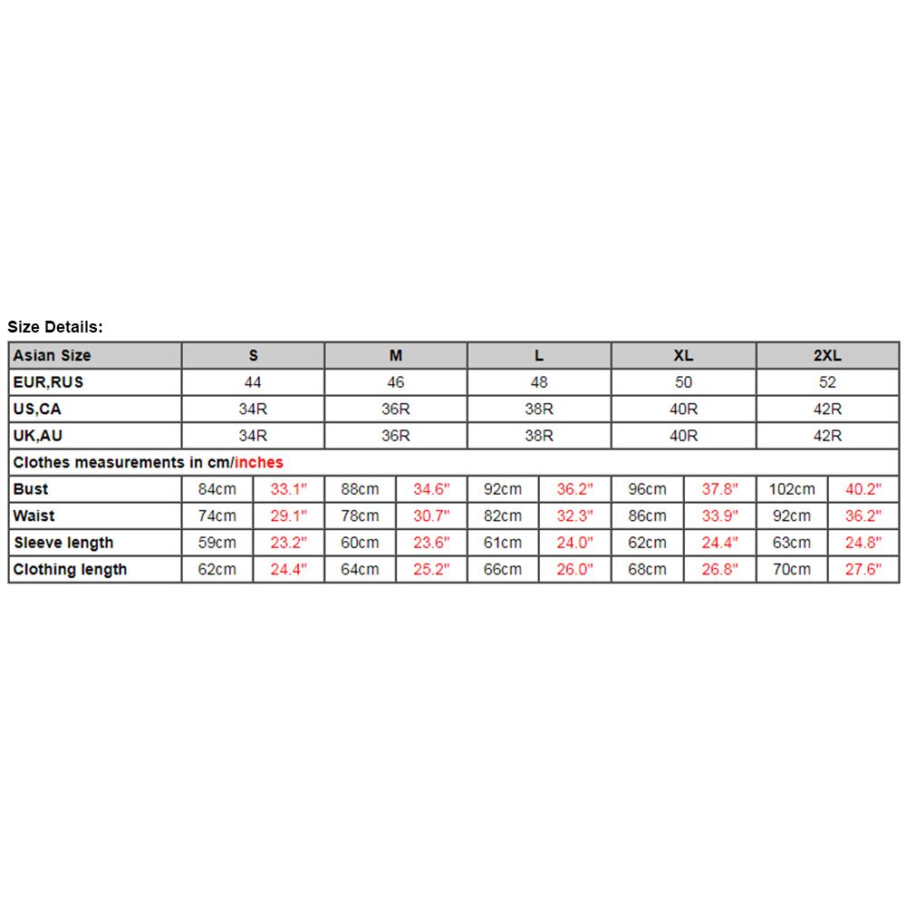 Size: S (US34R UK/AU34R EU44) / M (US36R UK/AU36R EU46) / L (US38R UK/AU38R EU48) / XL (US40R UK/AU40R EU50) / 2XL (US42R UK/AU42R EU52) (optional)