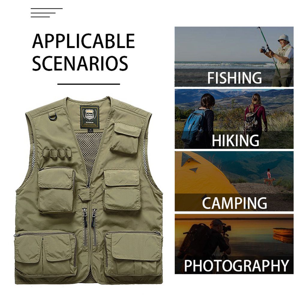 This vest is made of breathable and lightweight fabric. Pockets offer lots of space for phones, keys, tickets, small cameras, and other things. Fit for daily to outdoor leisure activities like fishing, traveling, working, climbing, camping, etc.
