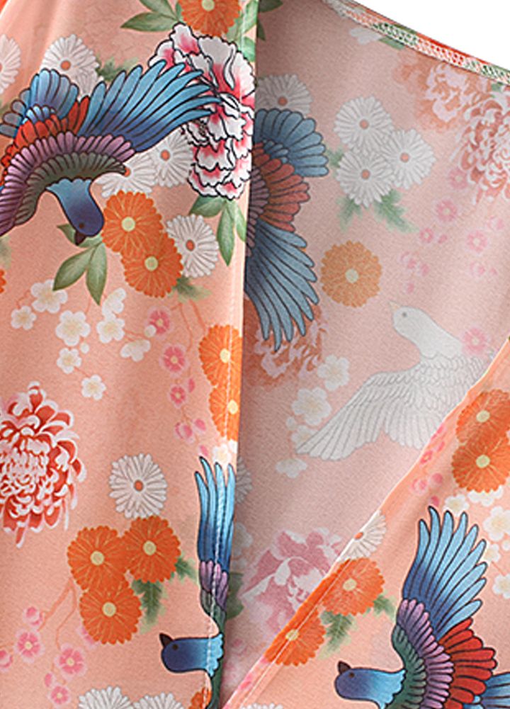 New Women Chiffon Kimono Cardigan Floral Print Long Sleeve Loose Outerwear Bikini Cover Up Orange