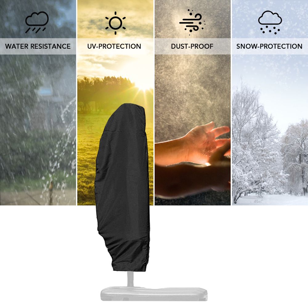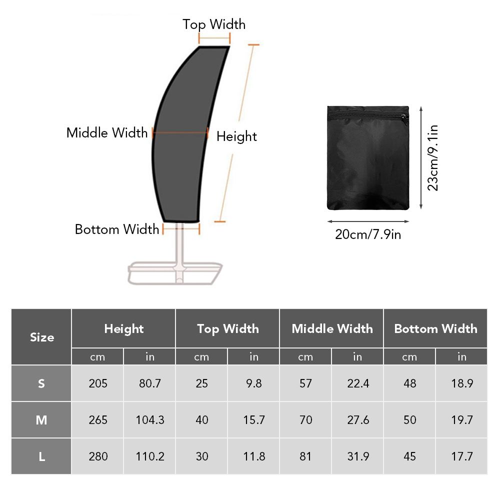 This umbrella cover is made from high density 210D oxford fabric with sliver coating, weather-resistant, waterproof, offers constant protection from dirt, dust, pet hair, debris, sunlight, keeping your umbrella clean and new.
