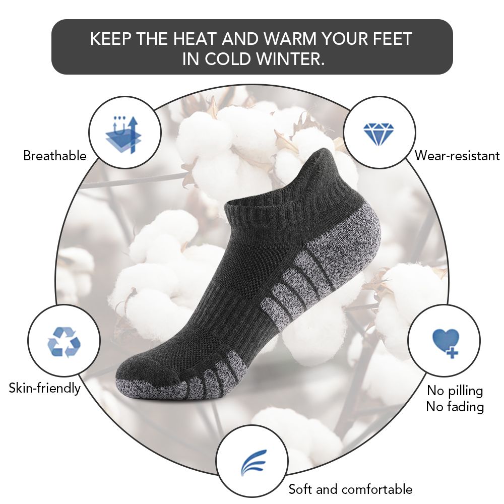 6 Pairs Sports Ankle Socks Athletic Low-cut Socks Thick Knit Autumn Winter Socks Outdoor Fitness Breathable Quick Dry Socks Wear-resistant Warm Socks Lightweight Anti-skid No-Show Socks For Marathon Running Cycling
