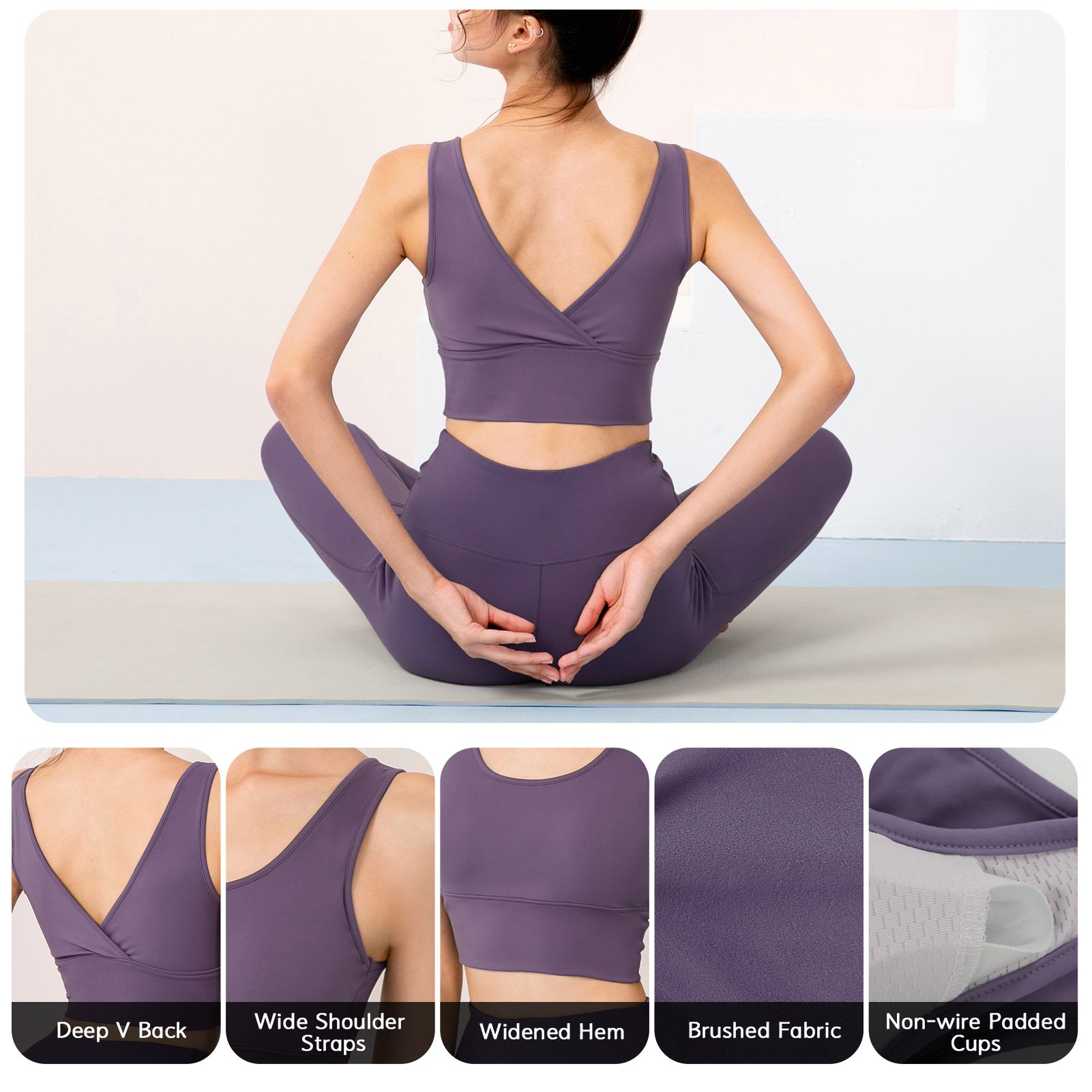 Women Sports Bra Yoga Running Workout Fitness Vest Deep V Back Padded Non-wire Crop Tops for Gym Home