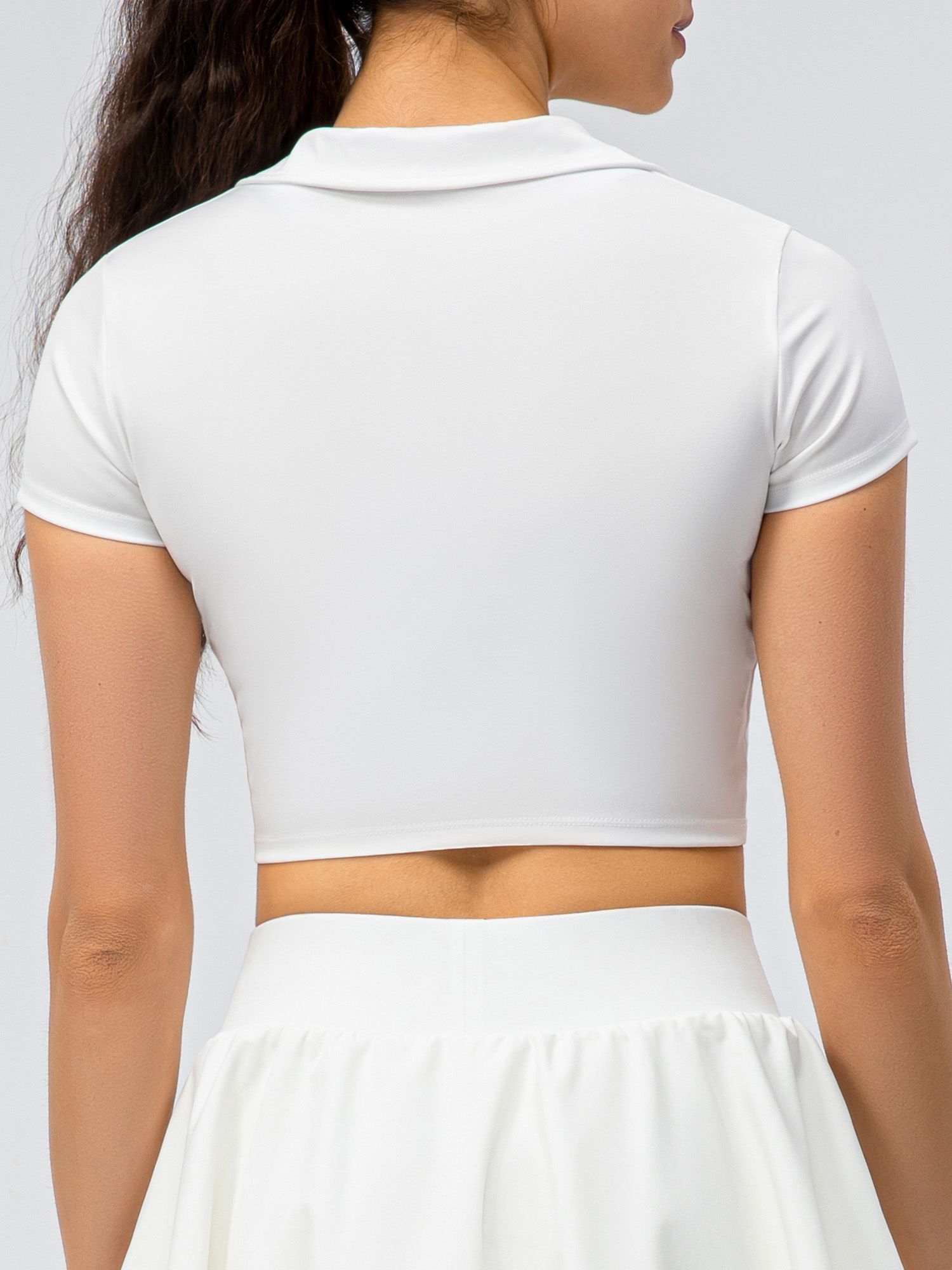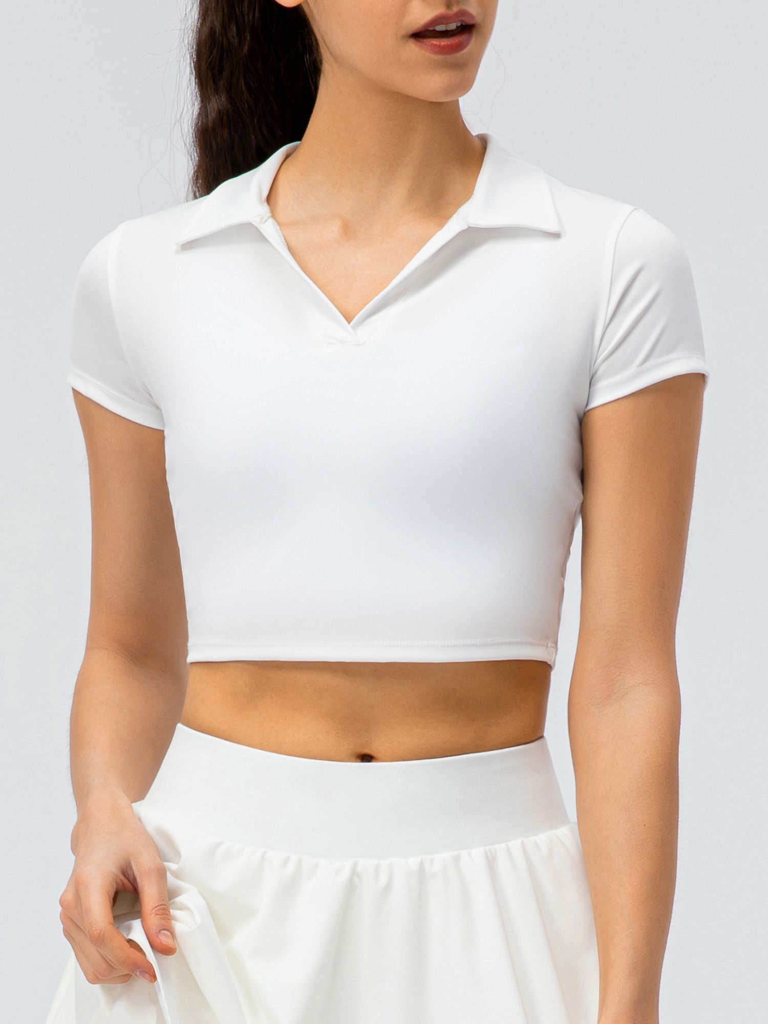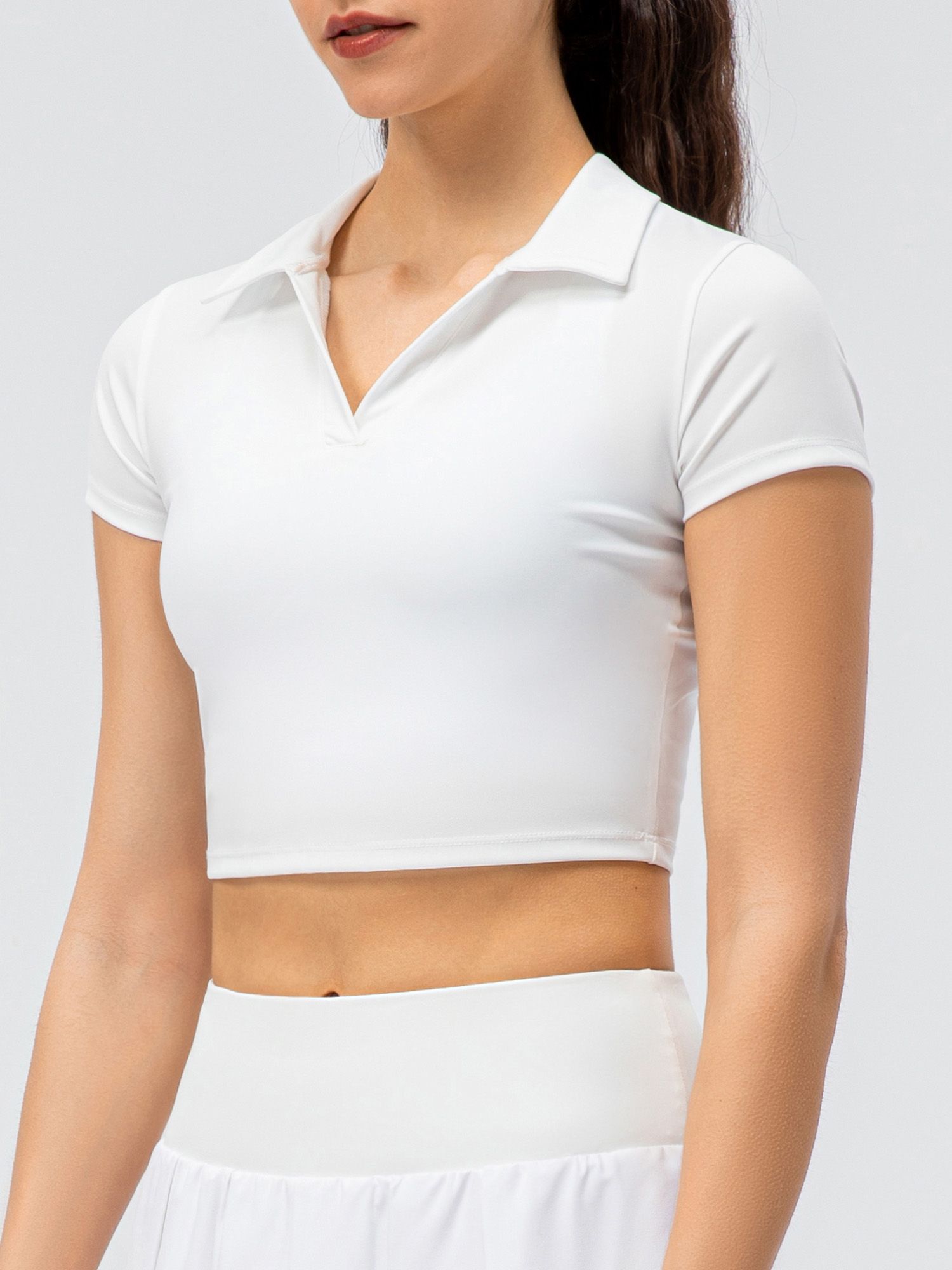 Slim shirt in a slim silhouette brings you a chic sports style. The crop cut shows your waist curves and flatters your body shape. Simply pair it with leggings or sports shorts to show a cool look.