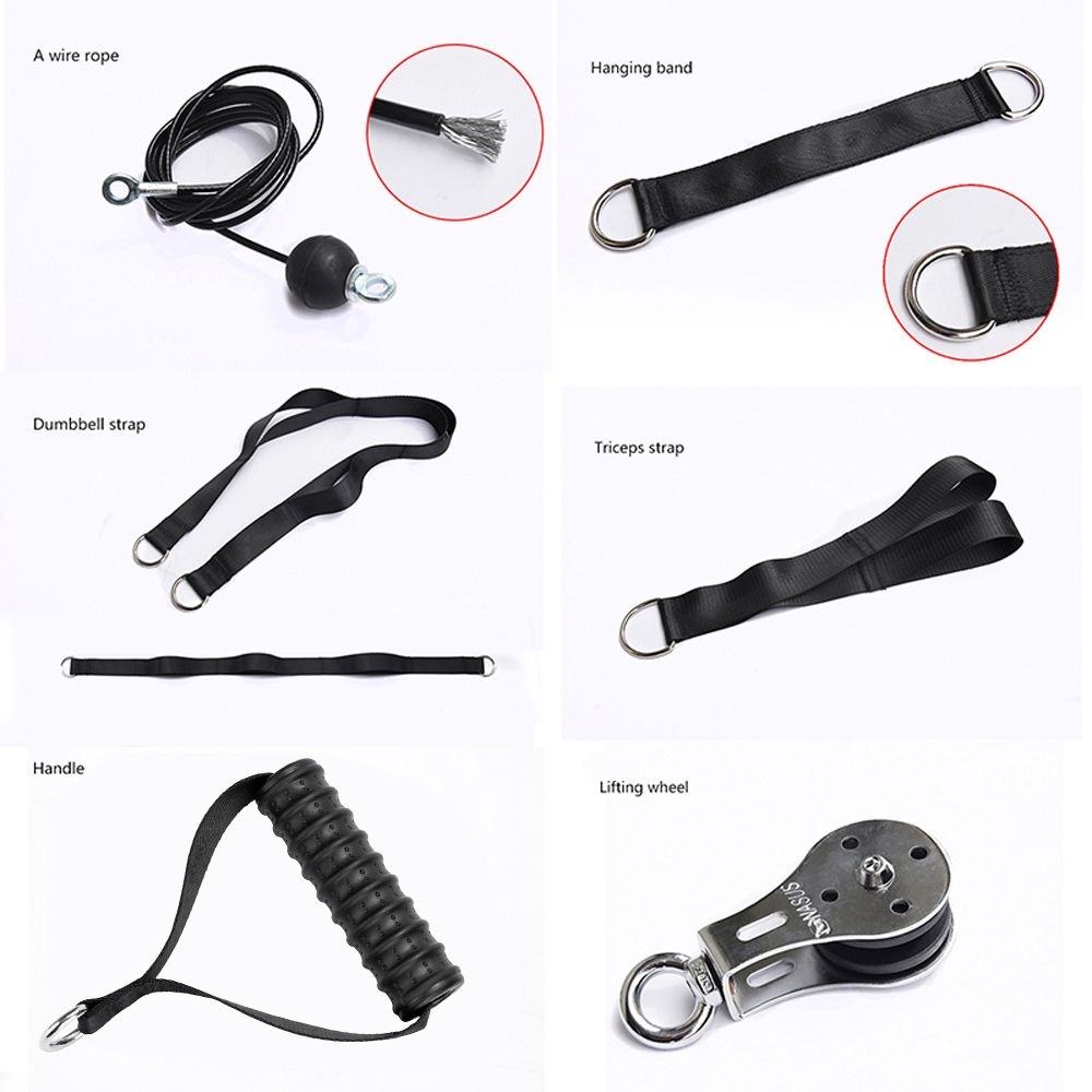 Fitness DIY Pulley Cable Machine Attachment System Arm Biceps Triceps Blaster Hand Strength Trainning Home Gym Workout Equipment Carabiner Steel Cable Mute Steel Pulley