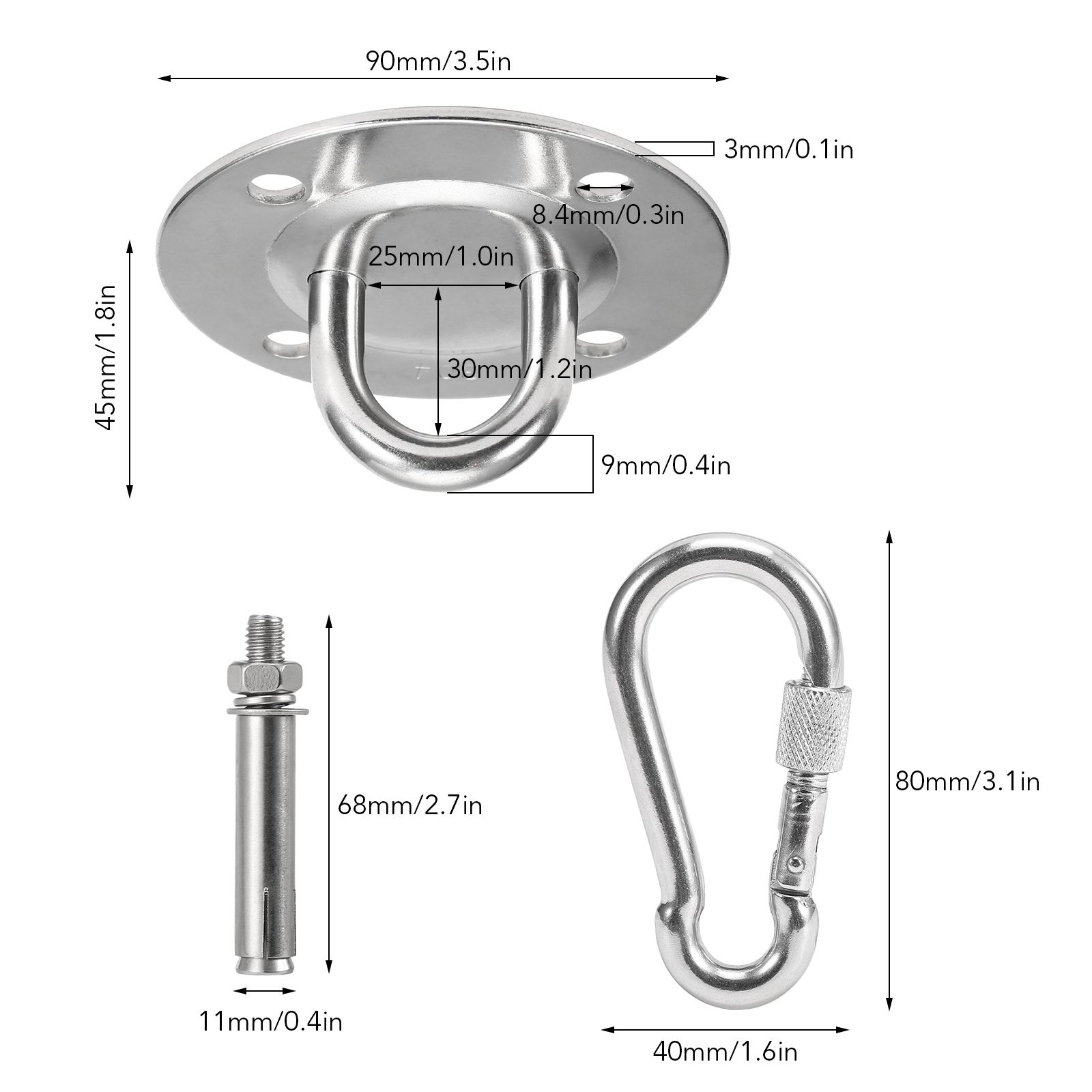 Wall Mounted Hook Carabiner Clips Set Wall Mount Anchor Bracket Hook for Hanging Chair Hammocks Yoga Boxing Punch Bag Training Straps Capacity Up to 1102 Lb