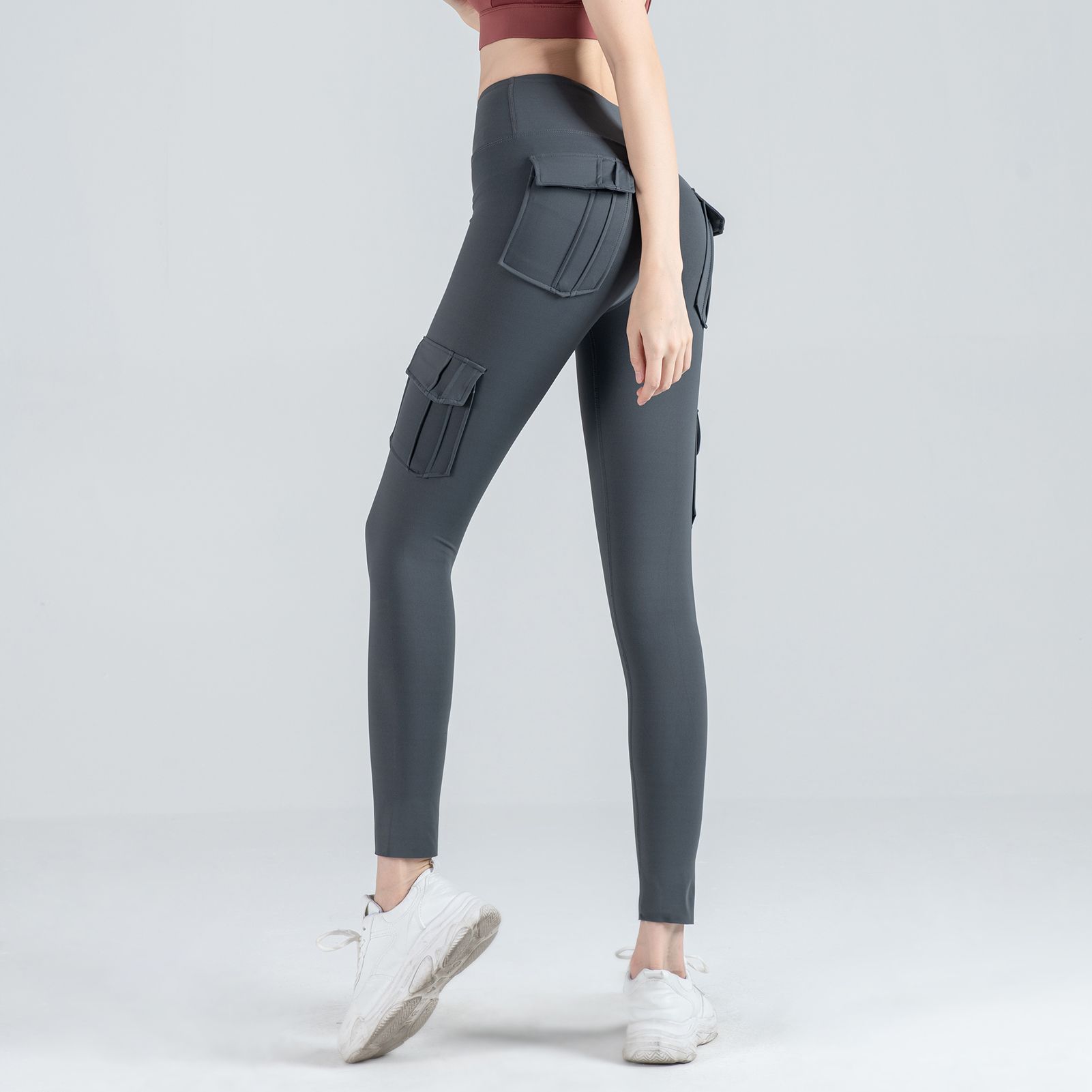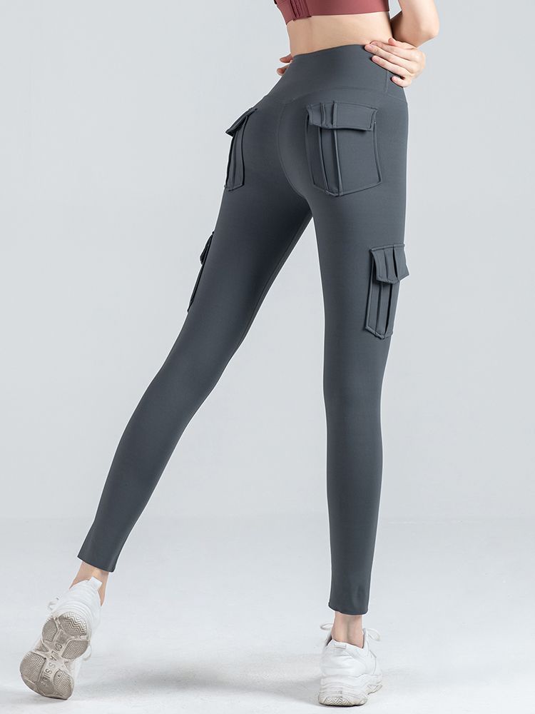 Women Leggings Cargo Pants High Waist Multi-Pocket Yoga Fitness Gym Athletic Sportswear Solid Bodycon Pants