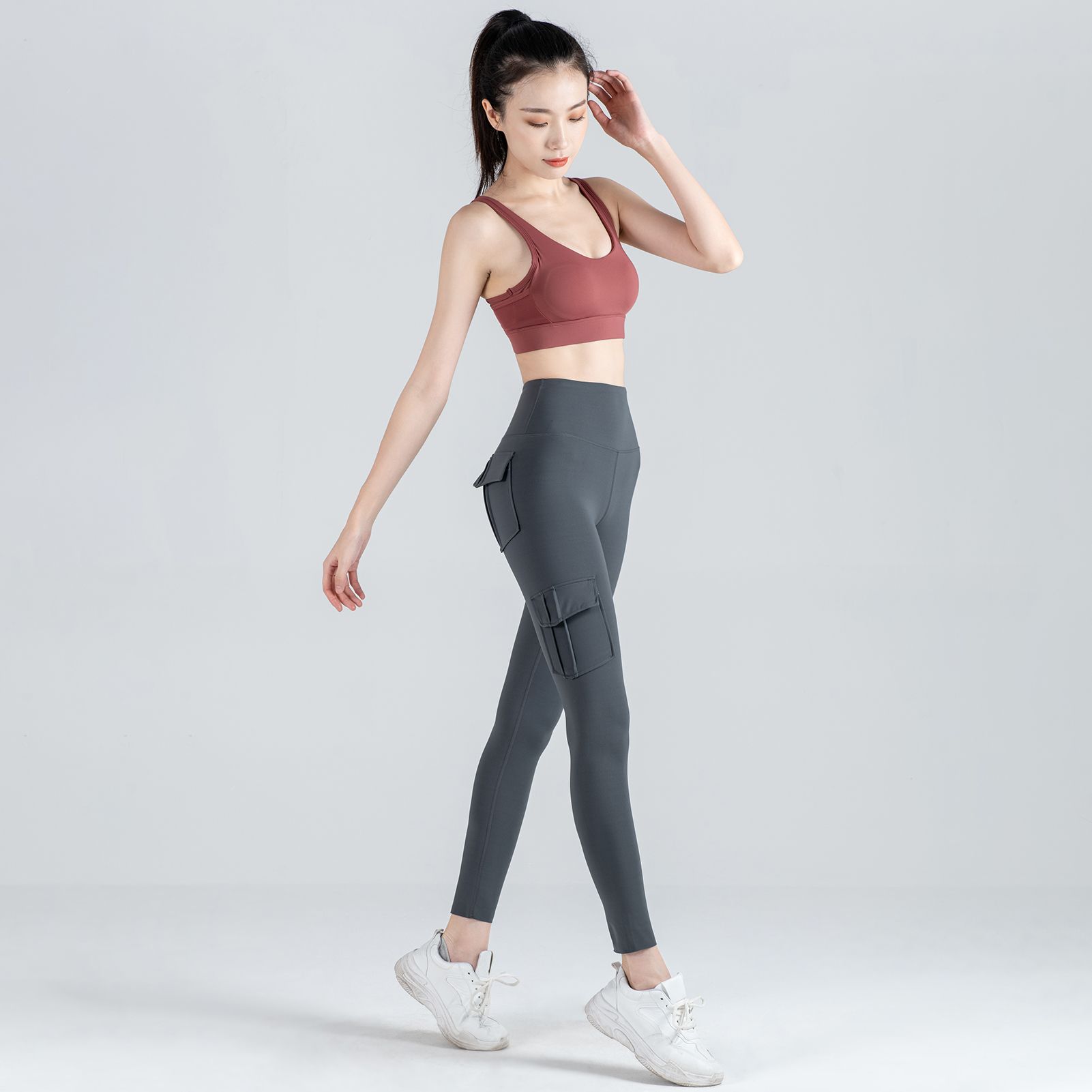 This leggings features chic cargo pockets design. It has 4 functional pockets, high waist and bodycon fit. Pair it with vest, sports bra or any shirt for a fabulous experience.